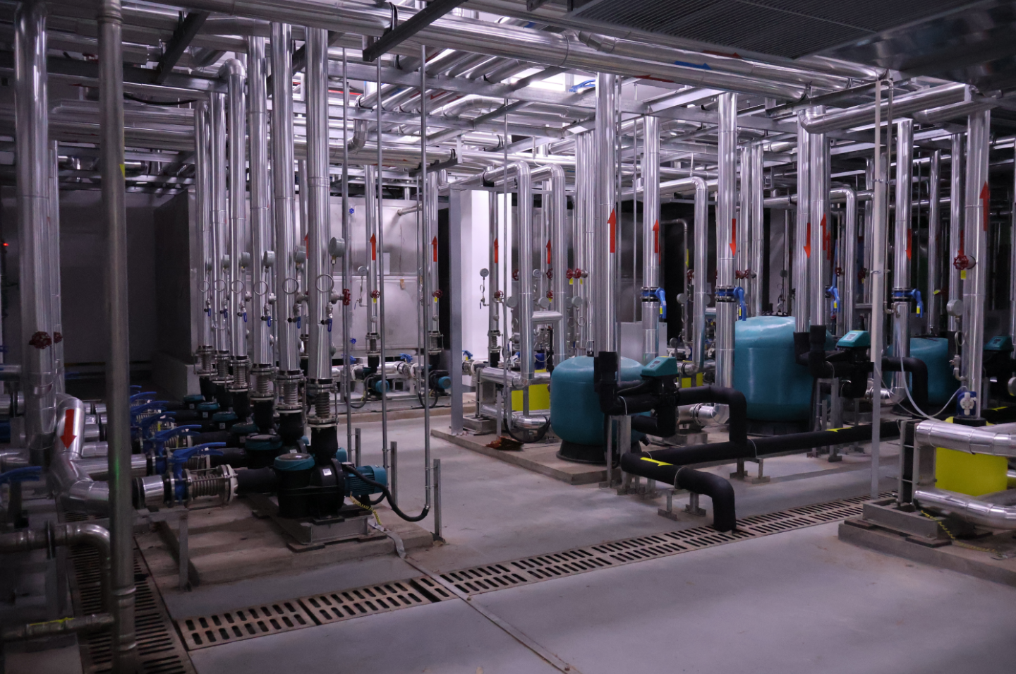 客房内私享汤泉池引入天然矿物质水源,公共水疗区更为核心亮点:室内外汤泉区采用ESPA(亚士霸)定制水处理方案,配备 12台Silen ST超静音泳池泵及80台Silen S循环泵确保活水动态净化,25台FCC泳池砂缸实现过滤。 静音技术与高效过滤系统结合,保证了汤泉水的超高标准,宾客在云雾缭绕中泡汤时仅闻鸟鸣泉响。